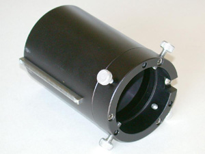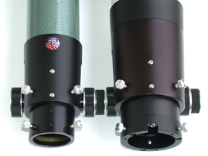 「35mmフルサイズ判」をケラレ無くカバーできるドローチューブ(最小内径2.4"=61mm)。左の標準2インチ接眼部と比べ重厚感が際だちます。大型化はまた、耐荷重の拡大、合焦精度の向上につながり、イメージングでのスムーズで正確な操作性のためにも必然の結果です。