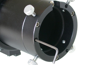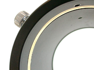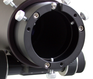 撮影機材との端面を形成するドローチューブエンドリングは、3組の押し引きネジによって傾斜調節が可能です。ごくわずかな狂いも許されないCCDイメージングいおいて、このチューニングメカニズムが有効になるかもしれません。たとえCCDチップが傾斜していても救済することができます。