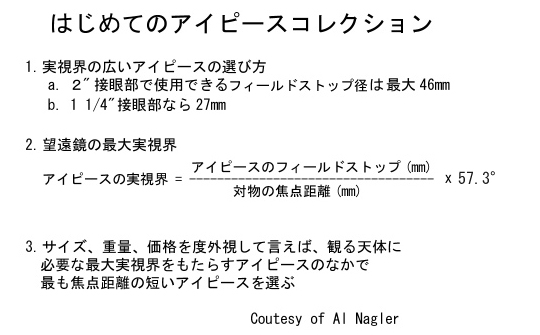 アイピースの選び方 上級編 Choosing an Eyepiece - Step by Step by Al Nagler