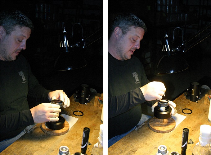 手作業で巧みに調整される接眼部 接眼部もまた、決して侮れないもう一つの望遠鏡の重要な構成要素です。ドローチューブの動きがスムーズでなかったり、重量でたわんでしまったりすれば、接眼部の反対側に高価なレンズ群を採用しても、アイピース/カメラを通す像はだいなしです。