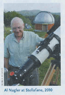 曇天にもかかわらず、アルはいて座のM22とM24を捉え、そのあと、ヘラクレス座の球状星団M13を視野に入れる。望遠鏡を振り回しながら夜空を探索し、アイピースを取り換え、どんなリクエストにも“ノー”と言わない。アルがアイピースの視野に入れたE.T.星団を覗いたビジターには、“上下が逆さまだけど、両目が判るかい。キュートだろ!”と声を掛る。深夜そろそろ床に就く前、“暗い雲間に天の川がみえるね。こんなビューティフルな天の川にはそうはお目にかかれない”と、だれに語り掛けるでもなく夜空を見上げるアル。 アル・ナグラーは、天文愛好家にあふれる私心のない善意を表す格好の例である。2014年にS&T誌に加わり、多くのスターパーティやイベントに参加し始めた私にとって、そのクオリティは卓越している。天文の趣味の良さは、とてもナイスな人々と、星を観たい人なら誰とでも、ただただ夜空の美しさを分かち合いたいという気持ちなのだ。 |