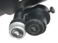 ■それぞれ2点式のクランプネジこれにより、重量のある撮影機材や接眼部品を確実に保持し、合焦操作を正確に行うことができます。ドローチューブクランプは、観望時のアイピース重量に応じたフリクション調整から、イメージングでのカメラの固定まで、幅広い目的に対応します。通常の観望には1本を軽く締めるだけで充分なフリクションを付加することができます。 ※接眼部とドローチューブの光軸上にあるそれぞれ2個所のネジは、オプションの「デジタルマイクロメーター(オプション欄で紹介)」取り付け用です。 |