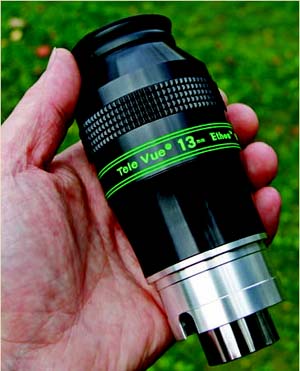 ディープスカイ観望を変えるテレビュー社の新しい13mm まもなく、テレビュー社から、極めて広い見掛け視界100°のイーソス13mmが登場。他の天体用アイピースとくらべても、直径で20%上回り、視野領域は50%広い。光学の世界で、このような驚くべき偉業を成し遂げたのがイーソスである。 テレビュー社はすでに、ニューヨーク、テキサス、カリフォルニア、インディアナのアマチュアには、イーソスのプリプロダクションモデルを披露。体験した多くのアマチュアに好評を博したイーソスは、その後の設計変更なく、10月の発売に向けて生産に入る。弊誌には、最初に作られたイーソスが貸与された。生産モデルとの違いは、バレル面の彫刻と形状だけ。